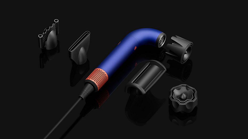 다이슨 슈퍼소닉 r 헤어드라이어와 자석 부착형 스타일링 노즐 3종을 깔끔하게 보관하세요.
